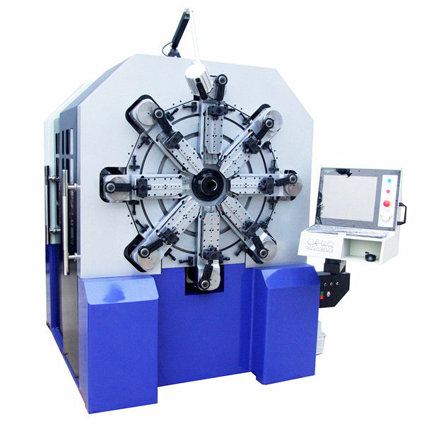 独特的无凸轮和无摇臂设计,由多组伺服马达独立控制,可以生产各种各样异型弹簧机、压簧、双扭簧、电池簧、扁簧(发条簧)及各种线成型等。精密准确、调机快速、稳定可靠。